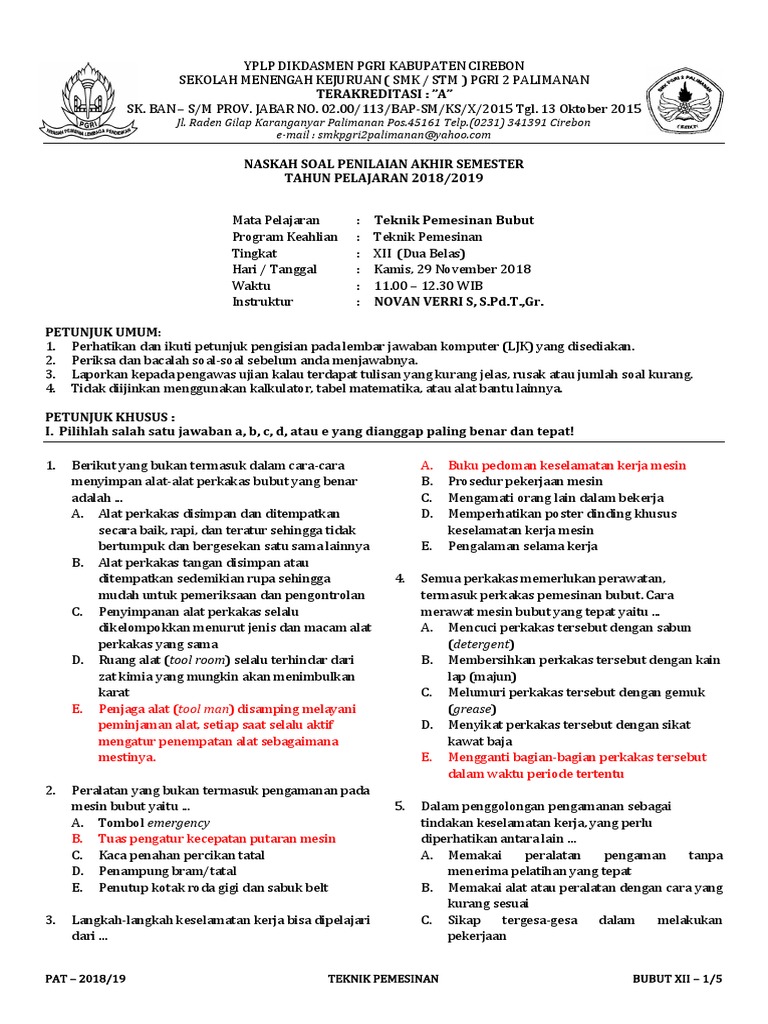 Soal soal teknik mesin beserta jawabanya.logam logam besi ferous dan logam logam bukan besi non feorus sesuai. Melalui contoh soal psikotes ini kamu bisa menghadapi ujian psikotes dengan amat percaya diri. Home soal teori produktif teknik pemesinan teori kejuruan teori kejuruan teknik pemesinan 40 soal teori produktif teknik pemesinan kelas xi dan kunci jawabannya. Mesin jenis ini juga dilengkapi dengan meja putar, sehingga dengan mesin ini bisa dilakukan pengerjaan pembagian bidang yang sama besar. 30 soal dan kunci jawaban uas gambar teknik mesin kurikulum 2013 teknik pemesinan.